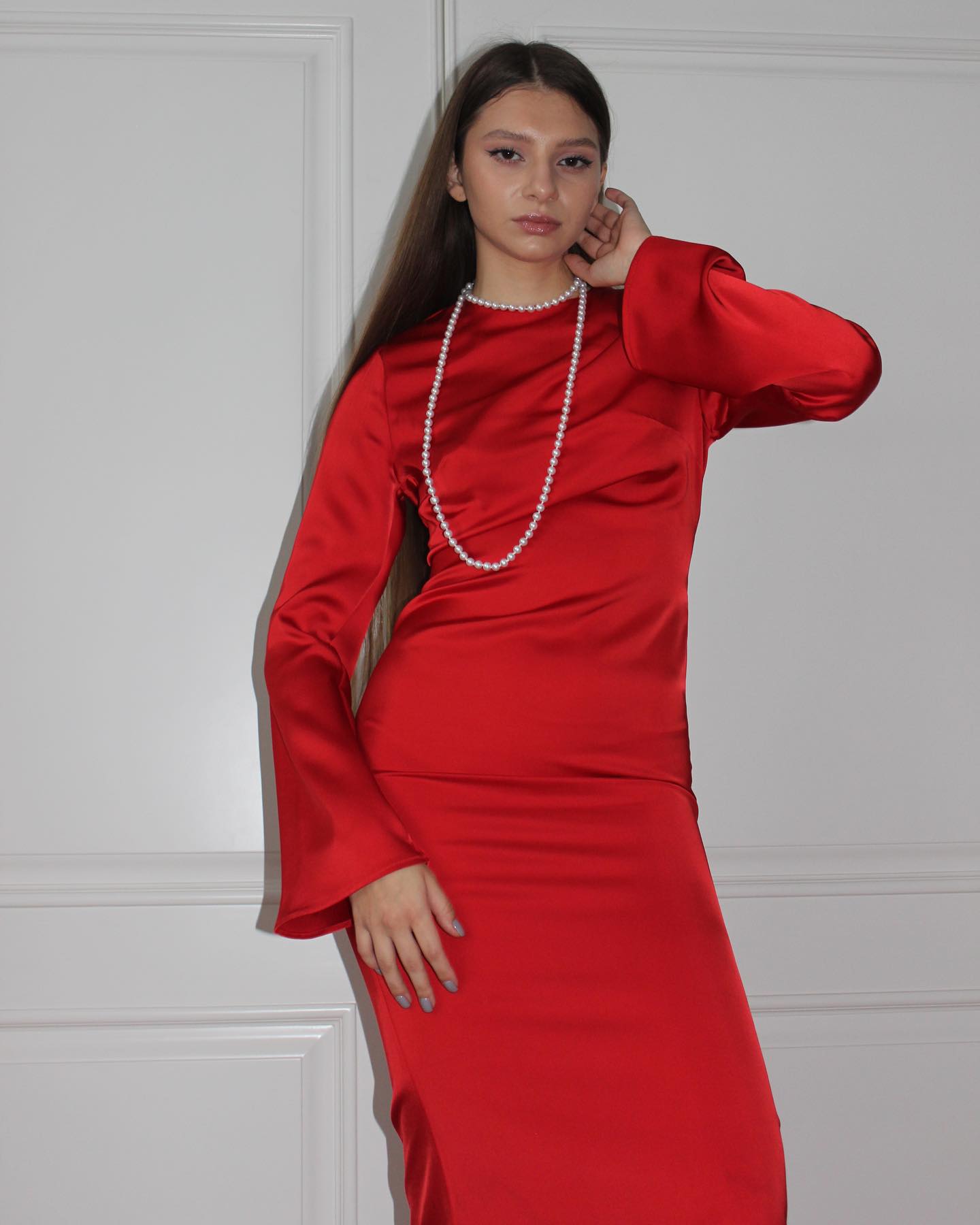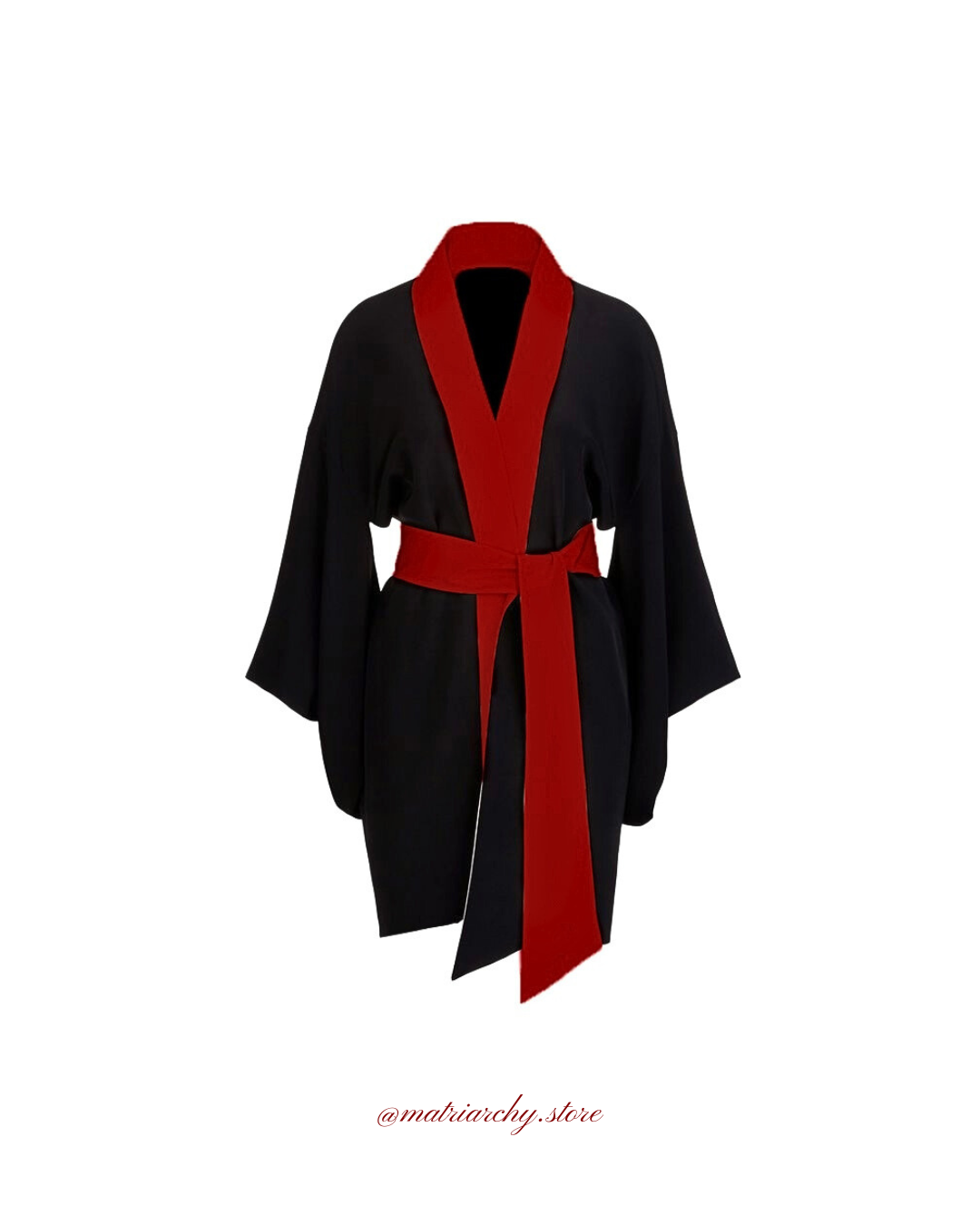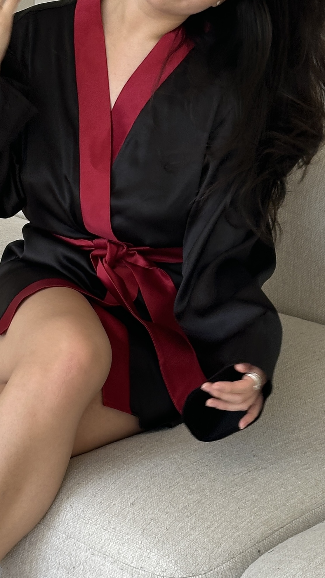 Эксклюзивный халат-кимоно из плотного атласа, вставки и пояс выполнены в глубоком красном цвете❤️